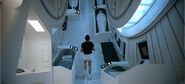 Discovery’s original mission was to observe and study Jupiter, but was later repurposed to investigate a mysterious radio signal detected from Saturn’s moon Iapetus. The mission’s director was Heywood Floyd. The flight-crew consisted of five astronauts, with three (Hunter, Whitehead and Kaminsky) in cryogenic hibernation while en-route. Frank Poole and David Bowman are on active duty, monitoring the ship’s activities. An onboard supercomputer called HAL 9000 assists in maintaining ship functions. Their days are highly structured to ensure the continued success of the mission and to make sure that nothing goes wrong.
