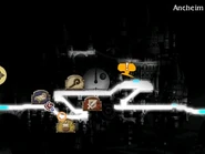 The city of Ancheim is high above the sand, high enough that the city can use the wind to turn the windmills. The road is rather narrow, and the city has many stairs and water pumps. The city itself is not too big, as most of the buildings are part of the Grand Mill. North of Ancheim is a dock to the Flor-Cheim Inner Sea, with water that has not rotted, allowing the Eschalot to land there even before the Water Crystal has awakened.
