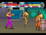 The controls for Final Fight consist of an eight-way joystick and two buttons for attacking and jumping respectively. Pressing the attack button repeatedly when attacking an enemy or multiple enemies will cause the player character to perform a combo. The final blow of the combo can be changed to a throw if the player moves the joystick in the opposite direction just before landing it. The player can also perform jump attacks. Pressing the attack and jump buttons simultaneously allows the player to perform a special attack that strikes all surrounding enemies, but will drain a small portion of the player's health.