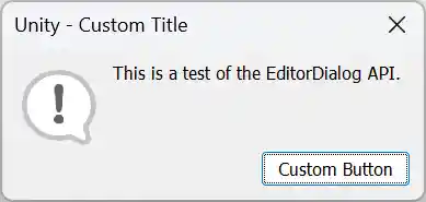 Unity - Scripting API: EditorDialog.DisplayAlertDialog