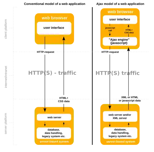 Ajax (also AJAX ; short for "asynchronous JavaScript + XML"[1][2]) is a set of web development techniques that uses various web technologies on the client-side to create asynchronous web applications. With Ajax, web applications can send and retrieve data from a server asynchronously (in the background) without interfering with the display and behaviour of the existing page. By decoupling the data interchange layer from the presentation layer, Ajax allows web pages and, by extension, web applications, to change content dynamically without the need to reload the entire page.[3] In practice, modern implementations commonly utilize JSON instead of XML.
