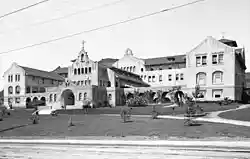 The gated community of Laughlin Park has 60 houses. In 1998, Laura Meyers of Los Angeles Magazine described the area as "The most seductive, exclusive neighborhood in Los Feliz".[37] W.C. Fields lived here in an Italianate residence built in 1919.[38][39]