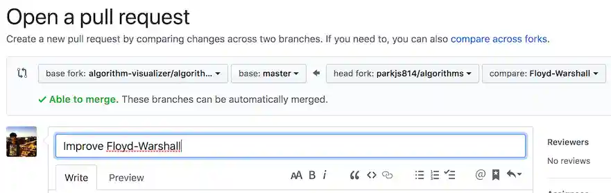 algorithm-visualizer/algorithms'smasterbranch from your forked repository's branch you created. -