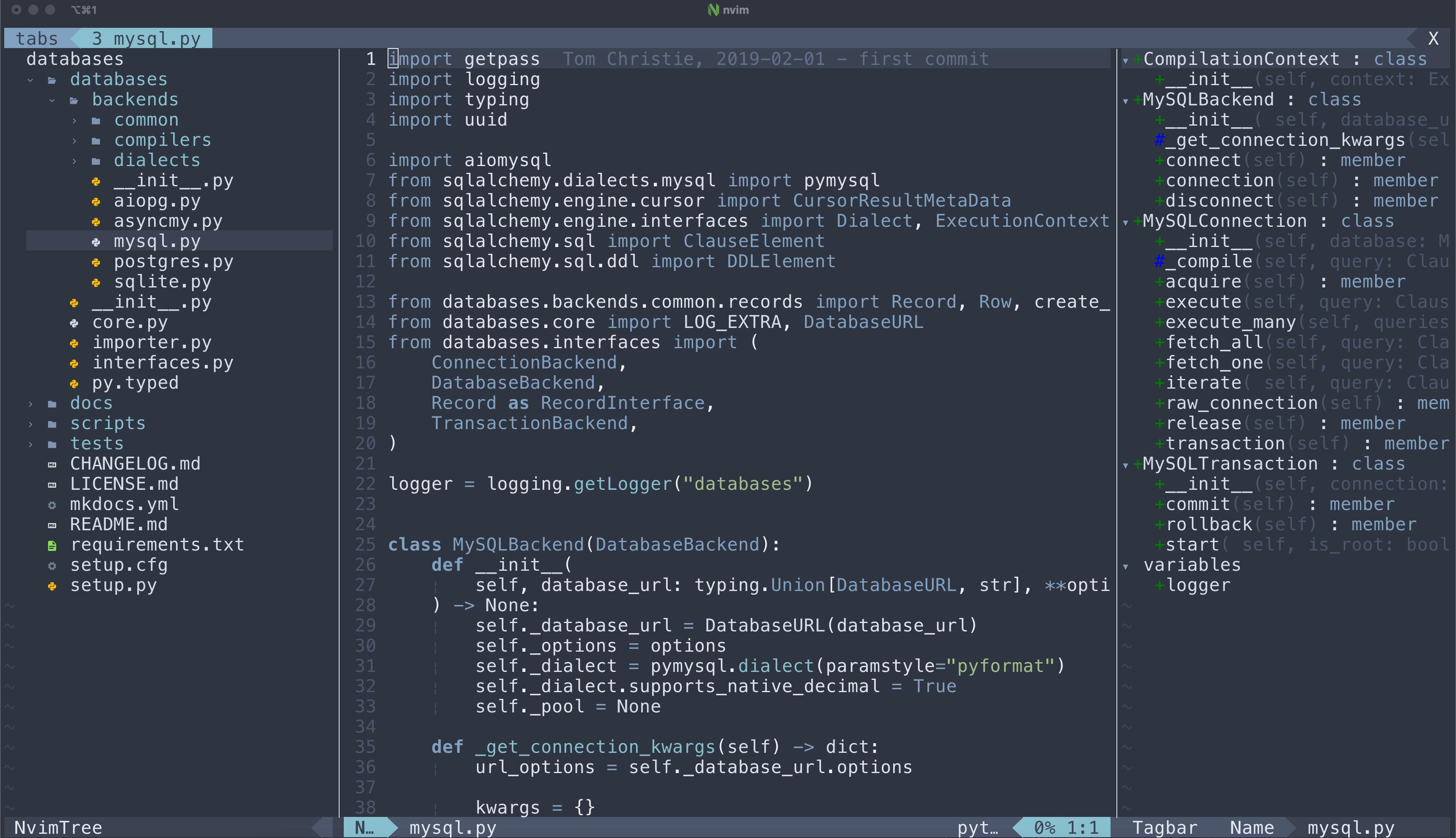 <C-i>: 前进 <C-o>: 后退 <C-]>: 跳转 <C-u>: 列出类、函数在哪使用 <C-g>: 获取类、函数的Docstring <C-e>: html、js补全 <C-c>: 切换注释 pd: 自动添加Docstring cc: git commit bb: git commit (buffer) mm: git blame SpaceSpace: 代码折叠 -