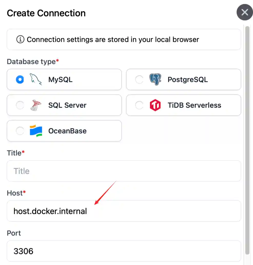 host.docker.internalas the host in the database connection setting.