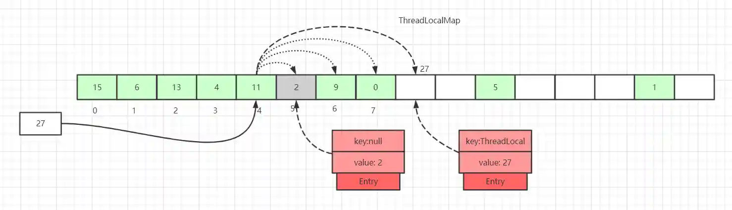 探测式清理是以当前Entry 往后清理,遇到值为null则结束清理,属于线性探测清理
