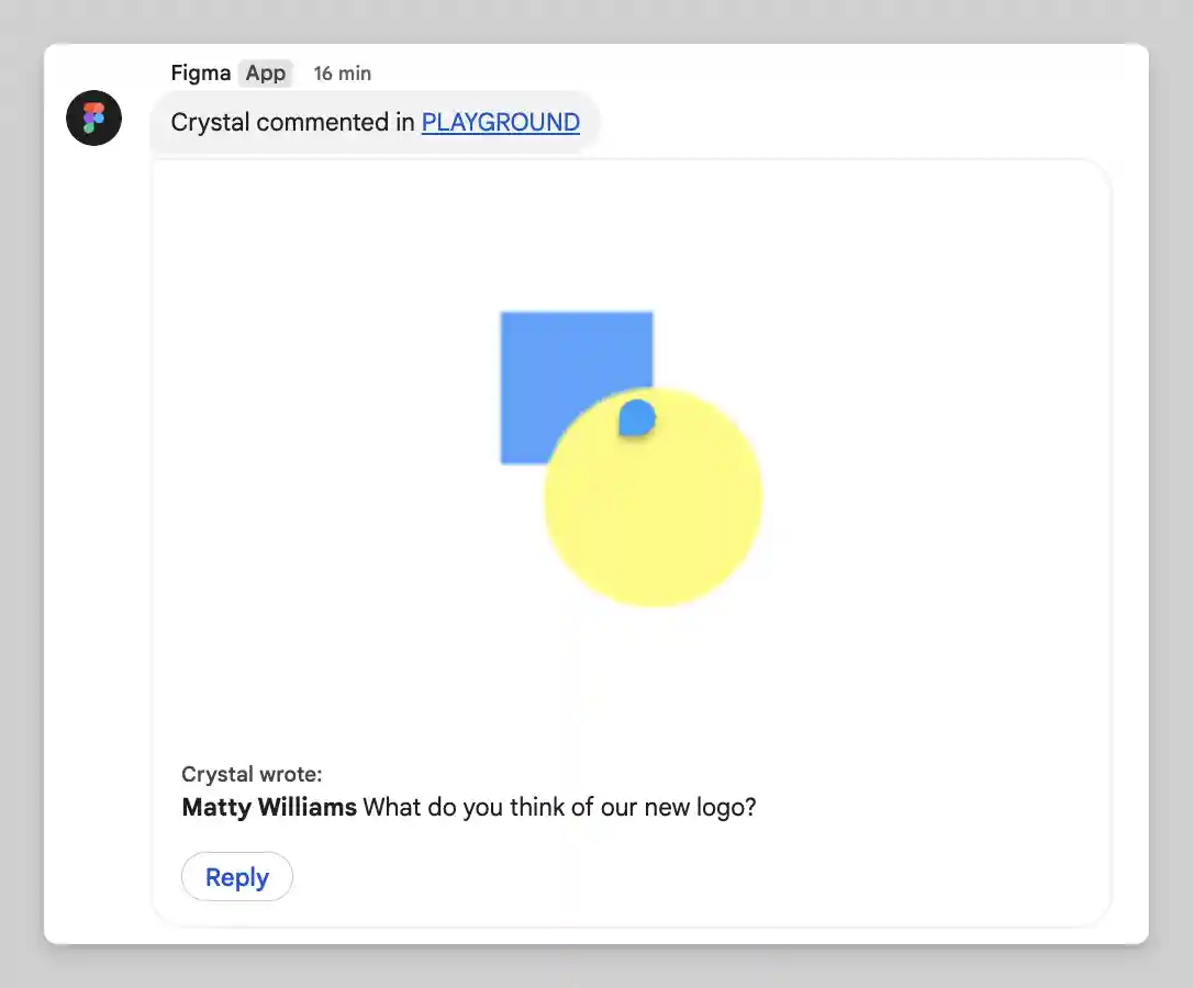 To reply to a comment, click Reply in the notification and enter a response. Your reply is added directly to the comment in the Figma file.
