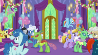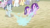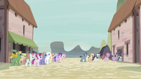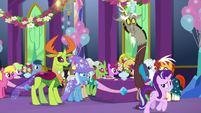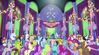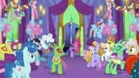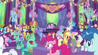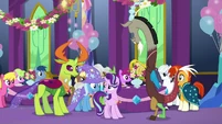 Sandalwood • Micro Chips • Diamond Tiara and Silver Spoon • Flash Sentry • DJ Pon-3 • Miss Cheerilee • Photo Finish • Cutie Mark Crusaders • Fluttershy • Pinkie Pie • Applejack • Rarity • Rainbow Dash • Principal Celestia • Big McIntosh • Trixie • Granny Smith • Vice Principal Luna • Cranky Doodle • Lyra Heartstrings and Sweetie Drops • Bulk Biceps • Maud Pie • Violet Blurr and Pixel Pizzaz • Shadowbolts (Twilight Sparkle (Sci-Twi) • Sunny Flare • Sour Sweet • Indigo Zap • Sugarcoat • Lemon Zest) • Gloriosa Daisy • Timber Spruce • Canter Zoom • Chestnut Magnifico • Zephyr Breeze
