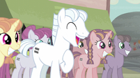 All Aboard • Angel Wings • Autumn Blaze • Barley Barrel • Blossomforth • Bow Hothoof • Bulk Biceps • Cheerilee • Cheese Sandwich • Cherry Jubilee • Claude • Clear Skies • Clear Sky • Cloud Chaser • Coco Pommel • Cookie Crumbles • Coriander Cumin • Davenport • Double Diamond • Feather Bangs • Firelight • Flash Sentry • Fleur de Lis • Flitter • Fluffy Clouds • Gizmo • Golden Gavel • Aunt Holiday • Hondo Flanks • Hooffield and McColt families • Mr. and Mrs. Hoofington • Inky Rose • Jack Pot • Jet Set • Joe • Junebug • Kerfuffle • Lily Lace • Auntie Lofty • Luster Dawn • Mane Allgood • Mare Do Well • Mayor Mare • Method Mares • Moody Root • Moon Dancer • Mr. Breezy • Mr. Paleo • Mr. Stripes • Mrs. Paleo • Ms. Harshwhinny • Ms. Peachbottom • Mudbriar • Night Glider • Night Light • Open Skies • Party Favor • Petunia Paleo • Petunia Petals • Pickle Barrel • Plaid Stripes • The Pony Tones • Quibble Pants • Rain Shine • Randolph • Roma • Royal guards • Saffron Masala • Sassy Saddles • Sheriff Silverstar • Silver Frames • Silver Shill • Sky Stinger • Snap Shutter • Spa ponies • Spearhead • Starstreak • Steamer • Stellar Flare • Sugar Belle • Sunny Skies • Sunburst • Sunshower • Sunspot • Swan Song • Teddie Safari • Torque Wrench • Tree Hugger • Trouble Shoes • Twilight Velvet • Upper Crust • Vapor Trail • Wind Sprint • Windy Whistles