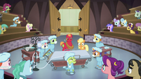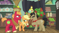 Mr. Rich does not look amused, however, Apple Bloom looks quite upset.