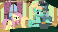 Fluttershy explains that she knew Zephyr would be too lazy to look for a job.