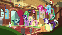 Sandalwood • Micro Chips • Diamond Tiara and Silver Spoon • Flash Sentry • DJ Pon-3 • Miss Cheerilee • Photo Finish • Cutie Mark Crusaders • Fluttershy • Pinkie Pie • Applejack • Rarity • Rainbow Dash • Principal Celestia • Big McIntosh • Trixie • Granny Smith • Vice Principal Luna • Cranky Doodle • Lyra Heartstrings and Sweetie Drops • Bulk Biceps • Maud Pie • Violet Blurr and Pixel Pizzaz • Shadowbolts (Twilight Sparkle (Sci-Twi) • Sunny Flare • Sour Sweet • Indigo Zap • Sugarcoat • Lemon Zest) • Gloriosa Daisy • Timber Spruce • Canter Zoom • Chestnut Magnifico • Zephyr Breeze
