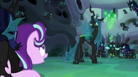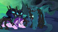 Evil Chrysalis walk away from imprisoned Twilight