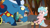 Chrysalis in flight with two changelings