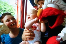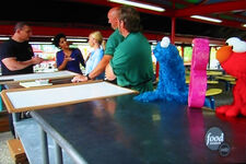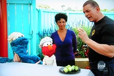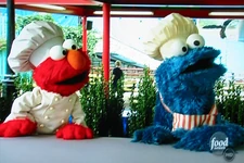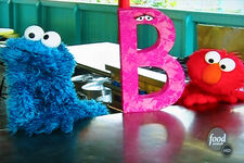 The team is challenged with preparing foods that start with the letter B (who also appears, voiced by Carmen Osbahr, at the beginning of the episode) for 250 of the park's guests. Elmo and Cookie Monster try to help in the kitchen, but after Cookie tries to chop lettuce with a karate chop, the monsters are "banished" from the kitchen. Later they try to get Irvine to make some food in certain shapes. Irvine is trying to beat a deadline and asks why they're trying to make his job so difficult. When he threatens Cookie and Elmo with a cucumber, Cookie protects Elmo and says, "Me take a bullet for you, Elmo!"