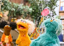 SCENE 1 | As Elmo welcomes the viewer, a ping pong ball drops to the ground. Elmo finds that Gabrielle, Zoe, and Rosita were testing a catapult that they learned to build from the book Everyone Can Be an Engineer. They show Elmo how their catapult works, this time launching the ball into Alan's apple basket. Louie then calls Elmo in for lunch. As Elmo leaves, Chris greets the others from his apartment window above Hooper's Store. Chris is resting his ankle, having fallen and sprained it. Alan volunteers to make him lunch and suggests that the girls can deliver it to his apartment. |