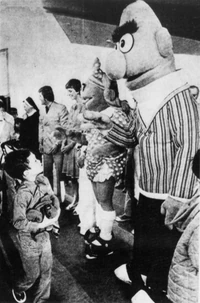 The 1975 season featured, in addition to a full-body Ernie, numerous Anything Muppets joining the cast regulars for "What's the Name of That Song?".[cite] After the Anything Muppets finished and left the ice, Mr. Snuffleupagus came out and sang "Nobody" in his only appearance of the series.