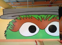 A clock with an image of Grover on its face and an Oscar the Grouch pendulum originally stood outside the theater. It was eventually replaced with a Big Bird clock with no pendulum.
