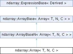Public Types inherited from ndarray::ArrayBaseN< Array< T, N, C > > | |