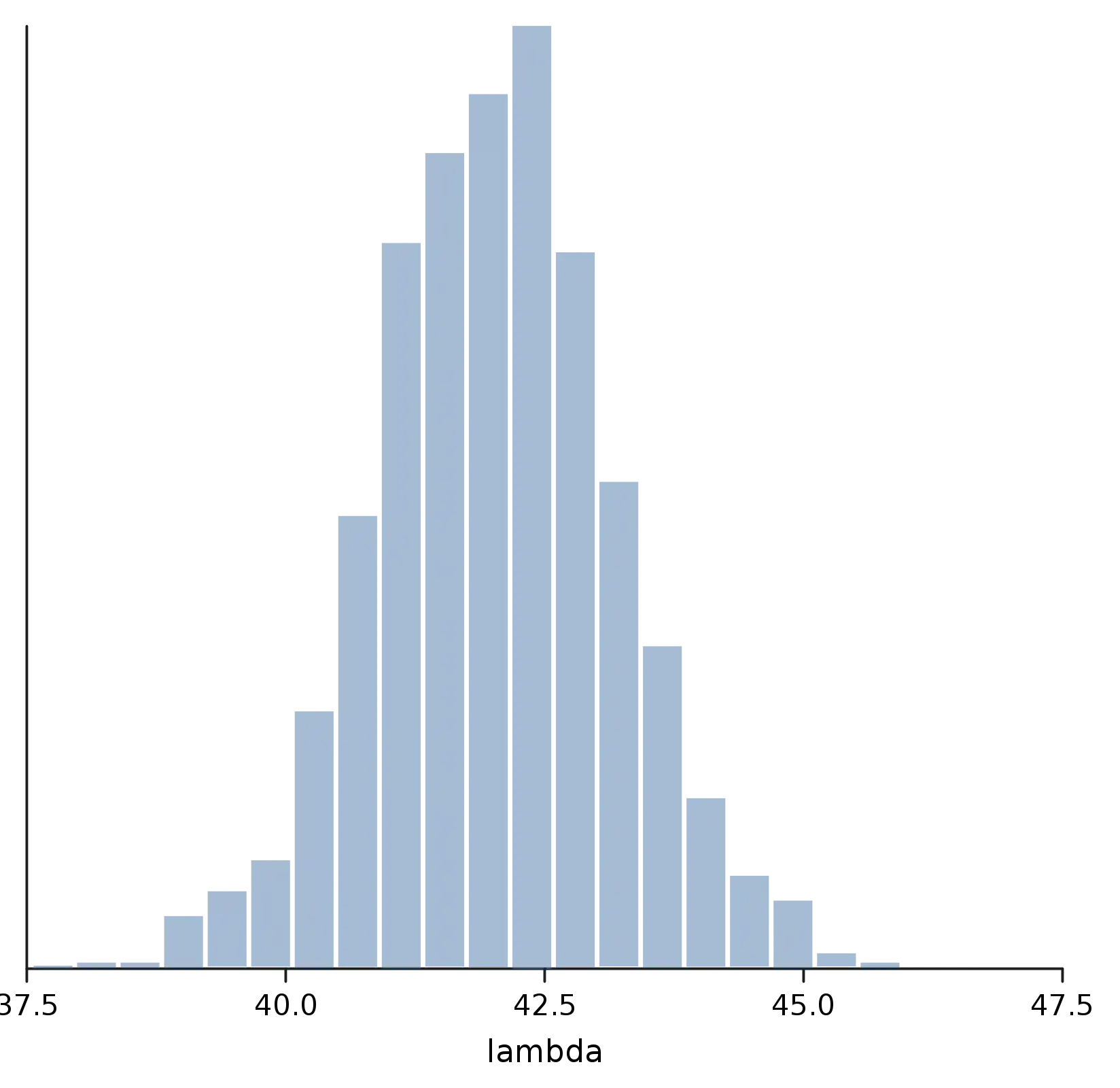 Finally, we're ready to take a look at the posterior for lambda. As with optimize, we need to specify which random variable we're interested in, by using the predict method on Trace.