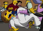 Disco Stu has also been seen dancing with Homer after Homer discovers his love of walking, getting smashed by a jukebox thanks to a beefed-up Marge, and most recently, a regular on Homer's talk show.